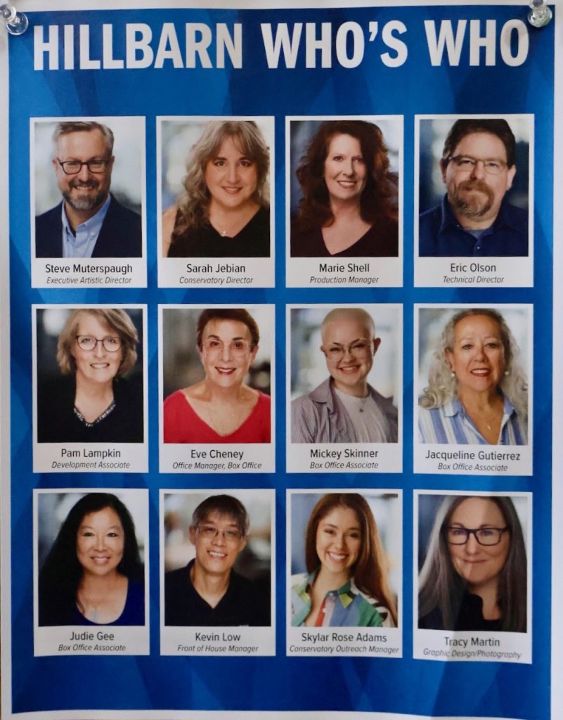 I marveled at one of the performances of The Unsinkable Molly Brown this past summer, especially how the high schoolers acted so well to make this updated version of the play so memorable. Stephen noted that the tradition of young people doing plays went all the way back to Robert Brauns, who started his stock version of plays mainly using College of San Mateo (CSM) students. The conservatory was a natural outgrowth of this, created by Lee Foster in the year 2000. So, all of the young people’s education programs, headed by the conservatory, continue to be an important part of Hillbarn. These include not only the summer stock performances but additional presentations in the fall and spring.